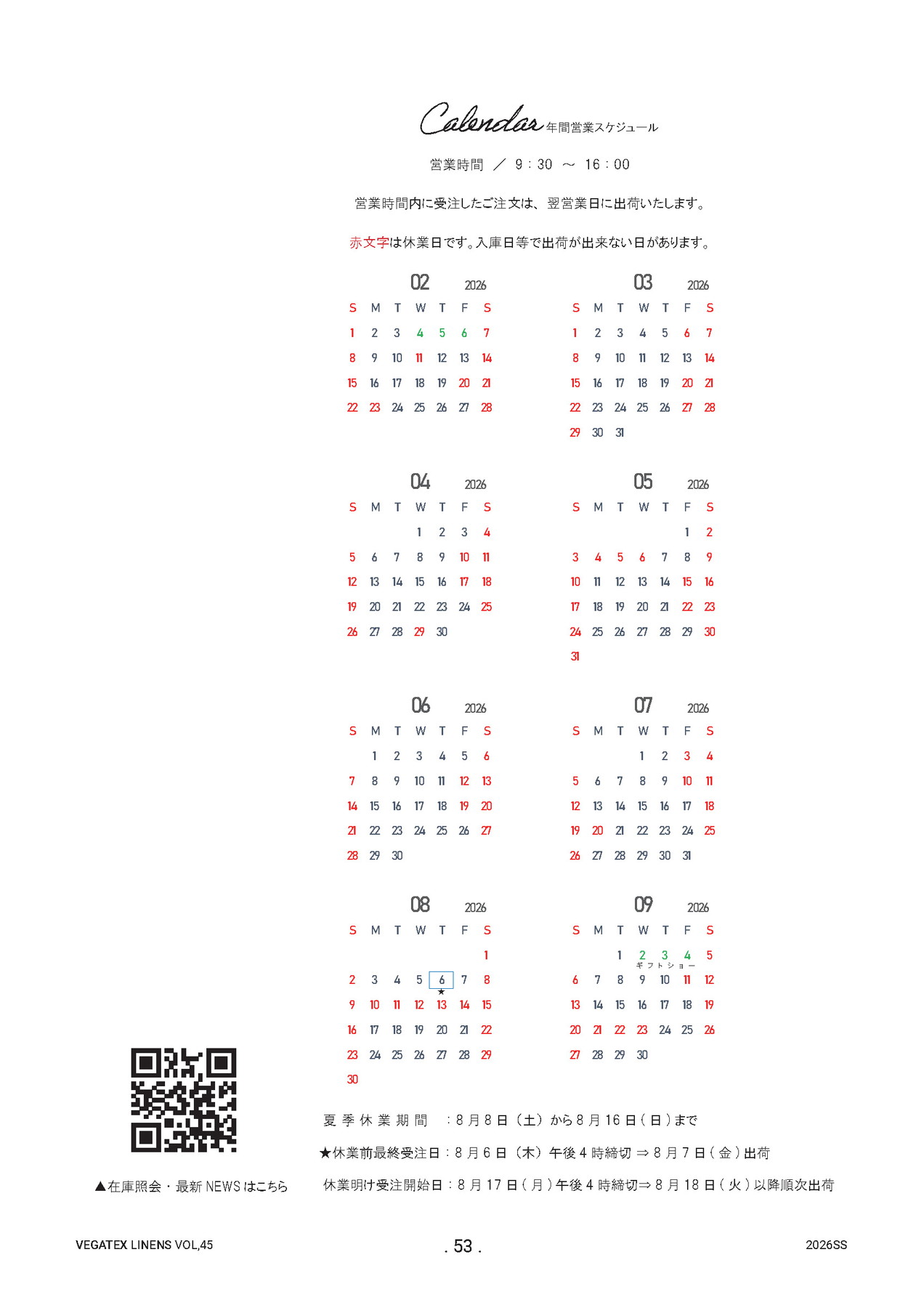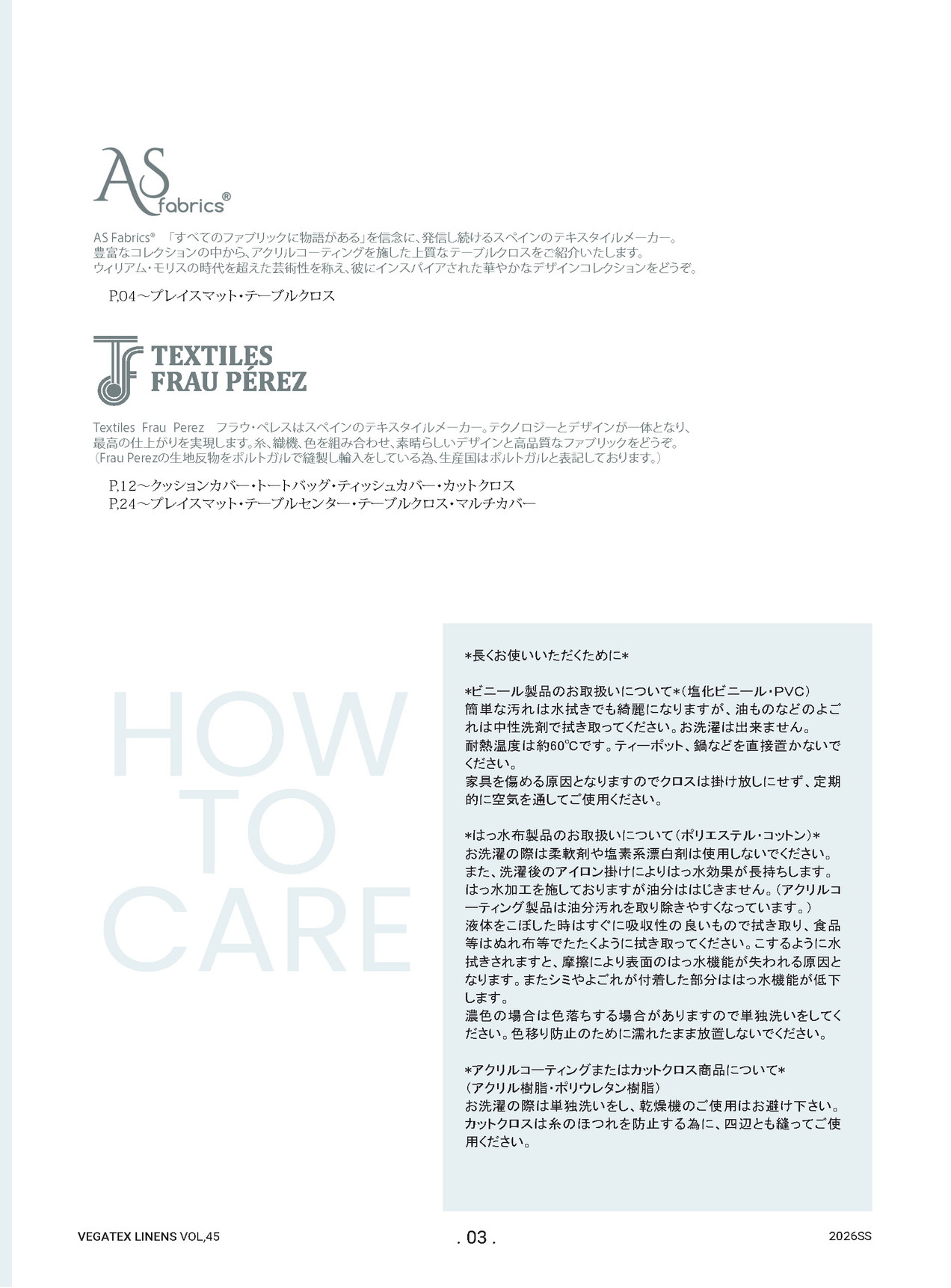 2026 SS VEGATEX LINENS NEW COLLECTION / Catalog No,45